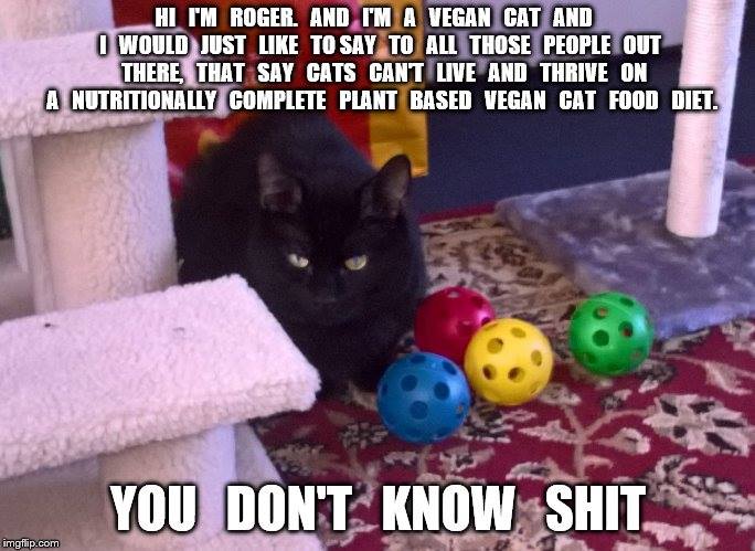 Before anyone comments any further, please understand that a 2016 paper published in a peer reviewed medical journal has confirmed the fact that commercially produced, plant-based cat foods can not only provide domestic felines with adequate nutrition, but can actually provide health benefits when compared to standard meat-based cat foods. When you fight against the idea of plant-based diets for cats, you are fighting against science, not to mention against the poor animals who must meet a pitiful end with a bolt or a blade. Willful ignorance and misinformation has no place in this debate.