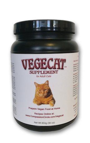 For Additional Recipes & Health Information, see Dr. Pitcairn’s Complete Guide to Natural Health for Dogs & Cats (4th Edition). Because the serving sizes for Vegecat phi™ are 13% larger than the Vegecat™ serving sizes used in the book, see the following link for the Vegecat phi™ serving amount for each book recipe, or simply add the supplement daily based on the Vegecat phi™ daily serving size: www.CompassionCircle.com/Dr-Pitcairns-Guide. The daily serving size for a 10-lb cat is 1-1/3 teaspoons of Vegecat phi™.
