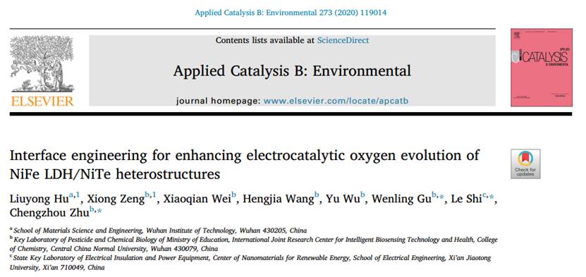 针对以上问题,MK SPORTS新能源材料与器件团队胡六永博士开展了一系列创新性研究,分别以NiTe纳米阵列和MXene二维材料为基底来负载LDH,改善了导电性同时增大了活性位点暴露。进一步通过界面电荷调控策略,有效调节了对中间产物的结合强度,提高催化剂反应活性的同时加快了反应速率,相关研究成果发表在《Applied Catalysis B: Environmental》(实时影响因子:16.85,中科院一区),《Chemical Engineering Journal》(实时影响因子:10.83,中科院一区),《Journal of Materials Chemistry C》(实时影响因子:7.25,中科院一区)等多个业界公认的国际顶级或重要科技期刊上发表。