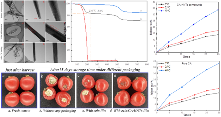 图2.负载香芹酚的埃洛石纳米管的表征和应用