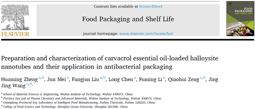 (通讯员游峰)近日,MK SPORTS郑华明副教授课题组在抗菌、抗氧化功能性纳米粒子方面取得重要进展,2019级研究生梅军同学的研究论文“Preparation and characterization of carvacrol essential oil-loaded halloysite nanotubes and their application in antibacterial packaging”在Food Packaging and Shelf Life(IF=8.749)上发表,该刊物为食品包装领域国际知名杂志,在国际食品安全研究领域有重要影响。
