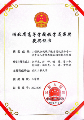 作为高分子材料与工程专业负责人,江学良始终学在一线、走在基层、干在实处,全力以赴做好学科专业建设工作。2019年高分子材料与工程专业成为学院第一个通过教育部工程教育认证的专业,并在同年获批国家首批一流本科专业建设点,相关专业建设成就于2021年被《中国教育报》报道。
