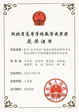 在他的示范带动下,近5年专业获省部级教学成果一等奖等奖项5项,3门专业课程获评湖北省一流本科课程,本专业的社会影响力显著提升,2021年位列员工会同类专业第10位。材料学科博士后流动站申报是他牵挂的一件大事,无论困难多大、工作多忙,他经常性抽时间召集大家研究、讨论并反复打磨申报材料。功夫不负有心人,2023年11月,材料科学与工程博士后科研流动站成功获批,为学校学科高层次平台建设取得了又一突破性成绩。
