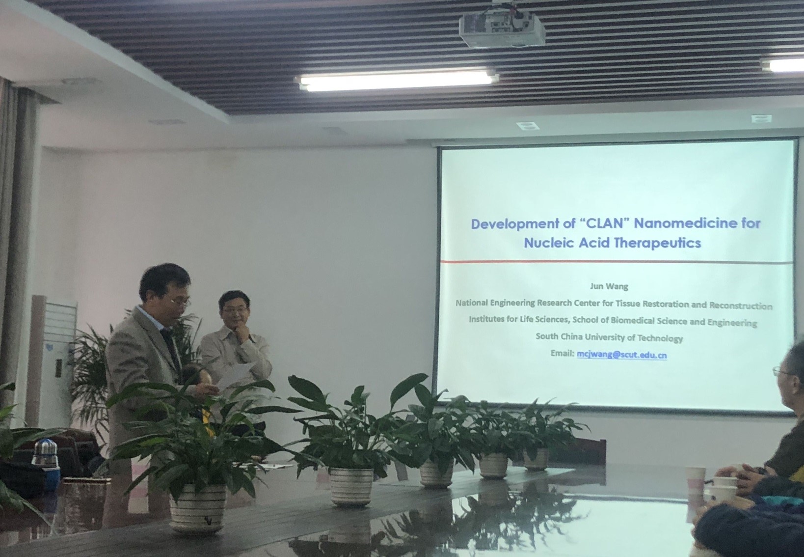 (通讯员陈思)11月13日,华南理工大学王均教授应邀来公司讲学。王均教授在MK SPORTSA314会议室作了题名为“纳米技术与药物递送”的学术报告。报告由MK SPORTS鄢国平教授主持,化工与制药学院经理喻发全教授、和化药学院从事相关研究的师生50余人参加了本次学术报告,并与王均授进行了深入交流。