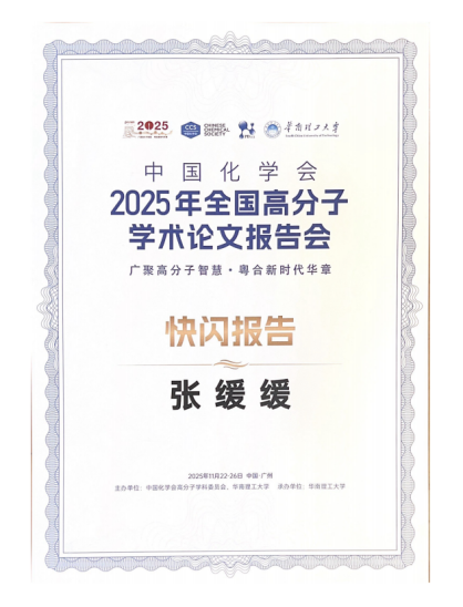 张缓缓老师在“高分子共混与复合体系”分会场作了题为“面向智能感知的硅橡胶复合材料:设计、制备与性能研究”的快闪报告。