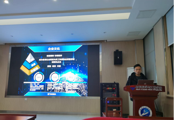 为促进同学更好的适应老员工活,为未来生活做更好的打算,陈郁勃以学长的身份从如何过好老员工活、毕业分界点的选择、天马的工作经历三个方面做了介绍和宣讲。重点为同学们解答了学习和工作上的困惑,在人生道路的分界点上应该如何抉择,介绍了天马微电子公司以及招聘人才所需要的具备的技能,未来时代发展的走向等等。