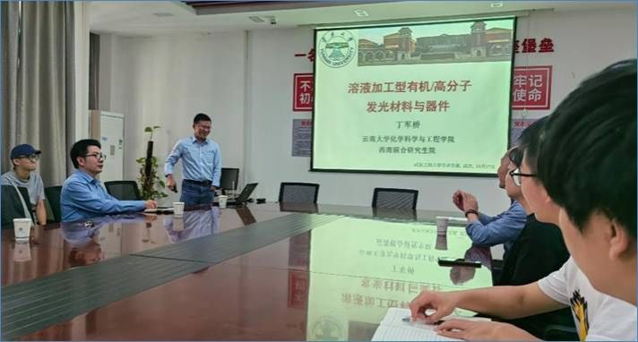 丁军桥研究员的报告引起了现场师生的浓厚兴趣,大家就有机/高分子光电材料的发展和应用,与丁研究员进行了热烈的交流讨论,丁研究员耐心解答与会者提出的问题,并鼓励本校员工报考云南大学研究生。报告结束后,丁军桥研究员参观了学院实验室,并与相关教师课题组进行了深入的学术交流。