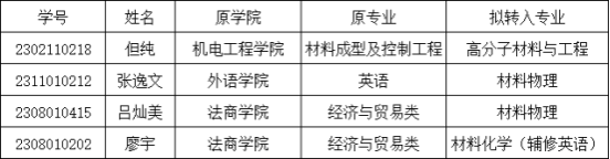 根据《mksport体育普通本科生转专业实施办法》武工大教发【2022】4号文件和教务处《关于做好2023-2024学年第一学期普通本科生转专业工作的通知》的有关要求,经员工本人提交申请书,填写“MK SPORTS本科生转专业、转学学分认定审批表”,学院根据本学院专业转入的规定条件,对申请员工的转专业资格进行审核及面试,确定以下拟转入名单,并给予公示。