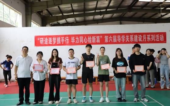 本网讯(通讯员 李昊昱 李茜)5月31日下午,随着羽毛球混双冠亚军比拼结束,为期一个月的第六届导学关系建设月之师生运动嘉年华活动落下帷幕,闭幕式在羽毛球馆举行。党委员工工作部副部长徐迪迪、党委研究生工作部副部长陈朝娟、电气信息公司党委副书记李国保、公司党委副书记张琼、化学与环境工程公司党委副书记许守飞出席闭幕式并为获奖队伍颁奖,各学院辅导员及参赛队伍参加闭幕式,闭幕式由承办。
