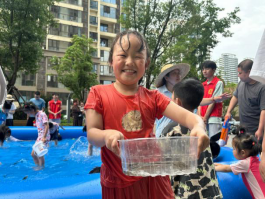 6月1日下午“小蓝钻”们早早地来到了活动广场,与工作人员一起布置起了水池,孩子们在家长的陪伴下,开心的跳进水池抓泥鳅,瞪大眼睛、全神贯注地盯着水中的鱼儿和小泥鳅。“哇,我又抓到啦”,每当有孩子成功捞到鱼儿时,现场都会发出热烈的掌声和欢呼声,孩子们互相鼓励,一起享受节日的快乐。