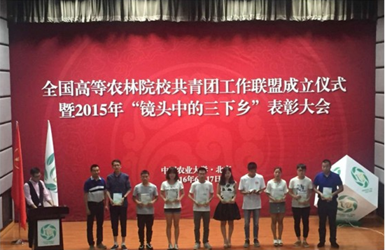 本网讯(通讯员 郑新霞)6月17日,由团中央学校部、团中央网络影视中心主办的2015年“镜头中的三下乡”暑期社会实践评选大赛表彰大会在北京中国农业大学隆重举行。团中央学校部副部长李骥出席活动并现场致辞,来自全国各地近50所高校的近百名师生参加本次会议,公司作为获奖单位受邀出席活动并现场领奖。