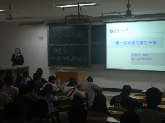 (通讯员:阮泽威)为了培养团委员工会干部干事的能力,针对干部干事弱项进行集中指导,于10月23日在1203室举办2015年第二期干部干事培训班。团委副书记杜娟老师,员工会秘书长吴丕业老师,原员工会主席李盛涛,现任员工会主席王一雯,团委副书记昝菲出席会议。