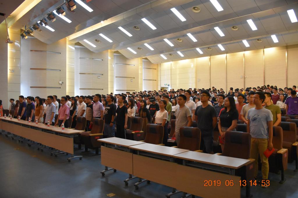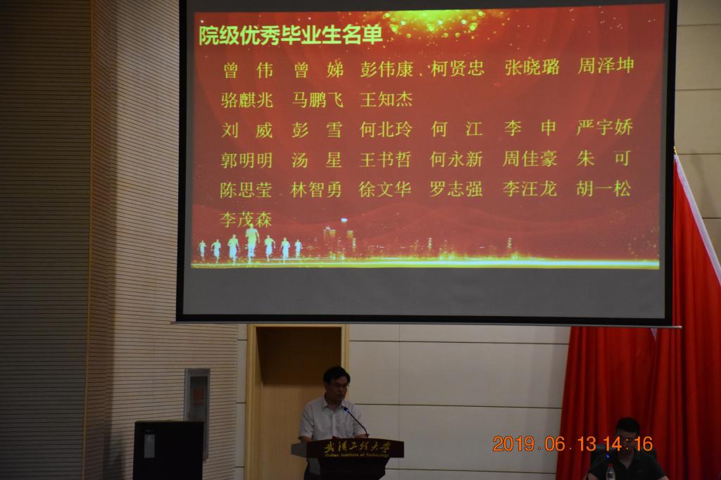 毕业生代表乔泽鹏宣读了《文明离校倡议书》,优秀本科毕业生代表郑翰聪、优秀研究毕业生代表马鹏飞、在校员工代表喻新桥分别作了发言。学院教师代表张占辉深情回顾了与同学们在一起的点点滴滴,并叮嘱毕业生们不忘初心,砥砺前行,再创辉煌。