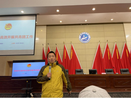 谭明武围绕“新时代如何高效的开展共青团工作”为同学们讲解了五个关键词“方向、目标、自律、学习、借力”,关键词与生活中典型案例的综合运用,让同学们更加清楚且轻松的认识到共青团工作如何在新时代高校开展。