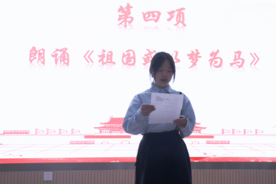 员工代表周娉婷朗诵《祖国或以梦为马》