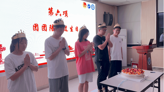 五四青年节之际,团委为五月份过生日的5位寿星准备了一份“小惊喜”。伴随着祝福的歌声,张琼老师为“小寿星”戴生日帽,同学们纷纷打开闪光灯、合唱生日歌,将美好的祝愿送给“小寿星”们,在荧荧烛光和点点星光的照耀下,感动、温暖与情谊在彼此间流动,温馨且浪漫。团团时刻围绕着青年学子,在这一刻,祝福“小蓝钻”们,希望大家在这一年,奋勇前行,勇往直前,圆梦诸多,自信出彩,绘就幸福的未来。