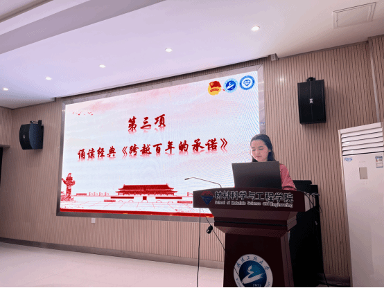 团干热孜瓦古力领诵红色经典《跨越百年的承诺》,以红色的语义,诉说着真理的跋涉,带领与会师生看到一代代有志青年一路追光、一路蓬勃,在新时代的长征路上不断求索。