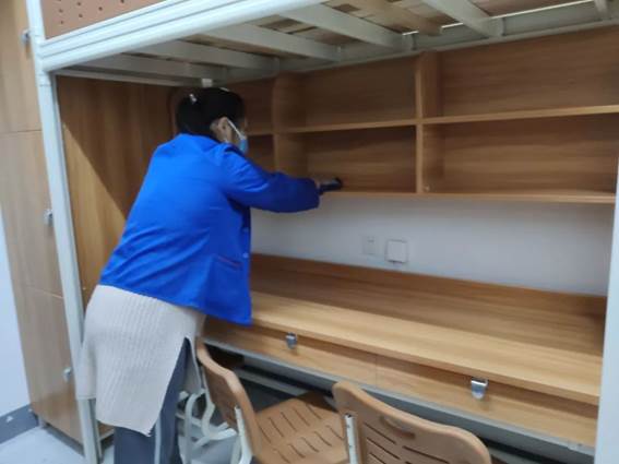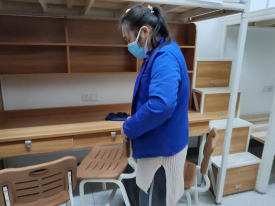 “我是在在2月12日下午两点,接到了物业主任的电话,下午四点要去长江职业技术学院帮忙打扫楼栋宿舍的卫生,进行防疫支援,为即将来住宿的病人提供良好的住宿环境。我马上就答应了,但是其实那个时候我一直生着病,身体不是很舒服,只是想着能做一点什么,硬撑着过去帮忙了。”