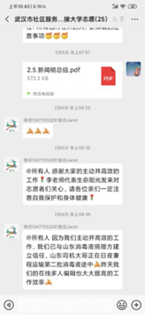 在志愿群里能深刻感受到武汉本地的近况,做好自己本职志愿工作的同时,真切希望这座城市能早日冲破疫情的阴霾,继续迸发它顽强的活力。只要每个人都能奉献自己的一点爱心,终将爱心满溢,点滴成河,共渡难关!