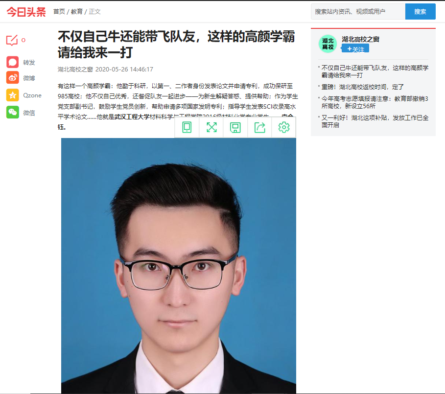 有这样一个高颜学霸:他勤于科研,以第一、二作者身份发表论文并申请专利,成功保研至985高校;他不仅自己优秀,还督促队友一起进步——为新生解疑答惑、提供帮助;作为员工党支部副书记,鼓励员工党员创新,帮助申请多项国家发明专利;指导员工发表SCI收录高水平学术论文……他就是mksport体育MK SPORTS2016级材料化学专业员工——孛金钰。
