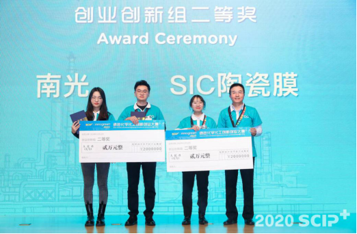 本届大赛自6月正式启动后,共有来自全国28个省市、6个海外国家的387支队伍报名参赛,涵盖110所高校和140家企业,其中,创业创新组247个团队,创业实践组140个团队。经初赛、复赛评选和线上半决赛,共决出3所高校和3家创业公司进入决赛,公司“SIC陶瓷膜”团队在创业创新组经过激烈的角逐成功晋级决赛,并以创业创新组第二名的优异成绩斩获全国二等奖。