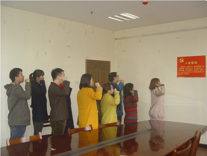学院办公室党支部书记熊彩云老师通报了党员到会和本月党费缴纳情况,随后,奏唱国歌,由公司党委副书记李佳领誓,办公室支部全体成员重温入党誓词,集体诵读党章。