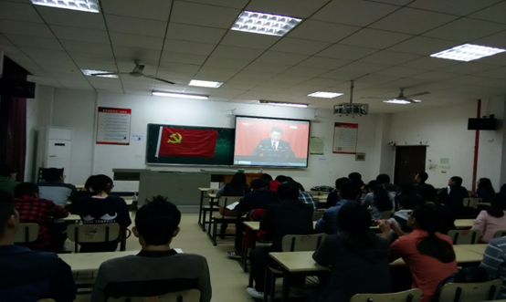 在嘹亮的国歌奏唱声中,活动拉开了帷幕。黄珂同志通报了党员到会和本月党费缴纳的情况,并带领支部全体党员重温了入党誓词。接着,全体党员学唱红歌《十送红军》,歌曲讲述了红军长征前后所经历的千辛万苦,歌词情真意切,催人泪下,表达了人民群众与红军依依惜别、难舍难分的真实情感,让同学们感受到了红军为传递革命的理想和信念不惜牺牲生命的精神,提醒大家要铭记历史、发扬传统,珍惜现在的美好生活。