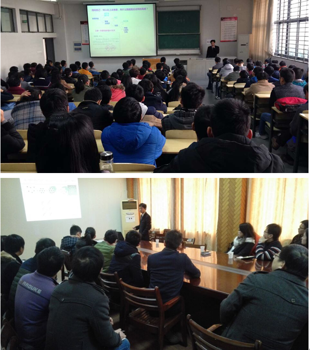 12月初何前军教授访问了母校,为本科生和研究生各做了一次讲座。3日抵汉后下午即前往流芳校区,结合个人的求学、科研与工作经历,为本科生做了“从纳米材料到纳米医学”的精彩报告。由于员工众多,讲座教室临时从L4112换到L4001,但教室还是挤满了员工。大家在好奇、赞叹之余,也从学习、生活、家庭以及爱好等各方面向何前军学长提出了一系列有趣的问题,何前军都一一做出了耐心、细致的解答,获得了同学们的一阵又一阵的热烈掌声。何前军教授最后勉励大家抓住当下、追求极致、不断攀登人生的高峰。
