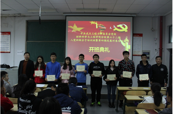 典礼在庄严的国际歌声中拉开帷幕,本次培训班共有91名入党积极分子和57名发展对象参加。肖平宣读了学院第61期党校优秀学员名单,刘治田、李国林为优秀学员颁发了荣誉证书。
