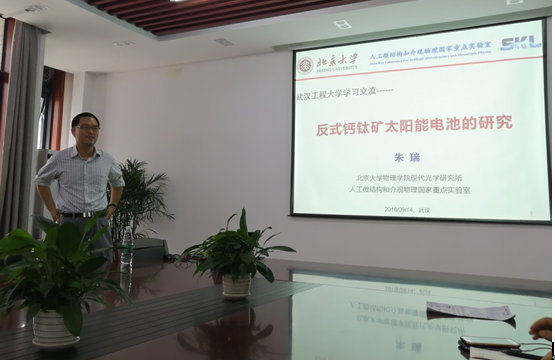 (通讯员:李鹏程) 9月14日下午,应MK SPORTS邀请,MK体育APP物理学院现代光学研究所朱瑞研究员来公司参加MK SPORTS举办的“材苑讲坛”(第3期)。在MK SPORTSA314会议室,朱瑞研究员为公司师生做了题为“反式钙钛矿太阳能电池的研究”的学术报告。公司党委书记、经理刘治田教授主持并致欢迎词,学院相关研究方向的师生聆听了报告并与朱瑞研究员进行了深入交流。
