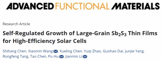 2022级研究生陈士航以第一作者身份在《Advanced Functional Materials》上发表题为“Self-Regulated Growth of Large-Grain Sb2S3 Thin Films for High-Efficiency Solar Cells”的研究论文。王小敏博士、胡朴教授为通讯作者。