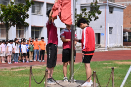 当国歌声响起,全体师生面向国旗,行注目礼,一双双闪亮的小眼睛紧紧注视着五星红旗,鲜艳的国旗升起,孩子们用他们响亮的歌声,表达了对祖国的热爱和敬仰之情。