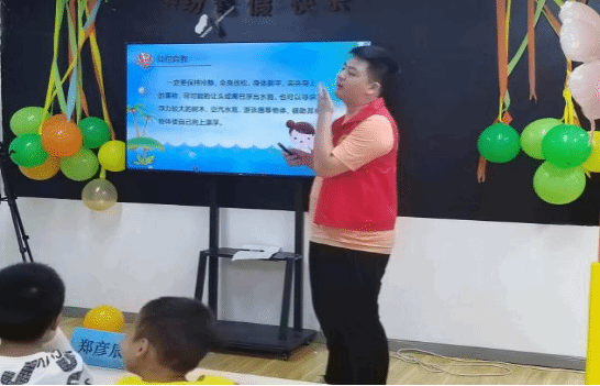 下午的特色课程上,由志愿者邹鼎阳讲授了开班安全第一课,以事例与数据说明加强安全意识的必要性,从生活各方面介绍了潜在的安全隐患,其中着重对暑期防溺水开展专题讲述,围绕着“自救与救援同伴”、“游泳六不准”等知识点,进一步加强孩子们的安全意识建设。
