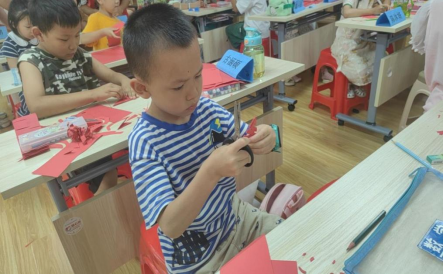 在剪纸课上,志愿者和孩子们上下翻动剪刀剪出各种精美的图案,从传统的窗花到可爱的动物形象,每一个作品都充满了他们的巧思妙想。剪纸活动即锻炼了孩子们的动手能力和手眼协调能力,也让他们感受到了传统文化的独特魅力。