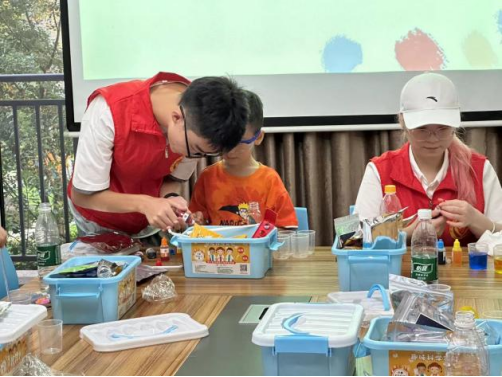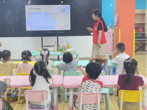 活动现场热闹非凡,仿佛一个充满魔法的科学乐园。小朋友们在“小蓝钻”们的带领下,尽情探索科学的奥秘。一个个有趣的科学小实验,如色彩的奇妙变幻、物体的神奇沉浮等,这些实验让孩子们沉浸其中,欢笑声与惊叹声此起彼伏。