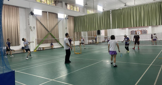 (通讯员 张芳)为丰富教职员工的业余生活,推动羽毛球运动的发展和激发大家的运动热情,锻炼身体、增强体质,增进学院教职员工之间的了解,为学校建设凝心聚力,为学校各项事业发展做出新贡献,恰逢“七十五周年国庆”之际,于2024年10月6日上午在武昌校区教职工活动中心成功举办了与外语学院羽毛球联谊活动。此次活动吸引了众多羽毛球爱好者积极参与,现场气氛热烈,欢声笑语不断。
