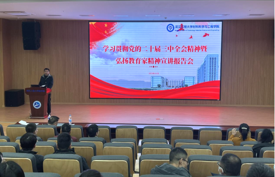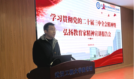 (通讯员 刘虎森)11月28日,为深入学习贯彻党的二十届三中全会精神,大力弘扬教育家精神,在图书馆二楼报告厅特邀“全国优秀教师”、校“十佳师德标兵”袁华教授作专题报告会。学院领导班子成员出席,全体教职工参会,会议由公司党委副书记马科主持。