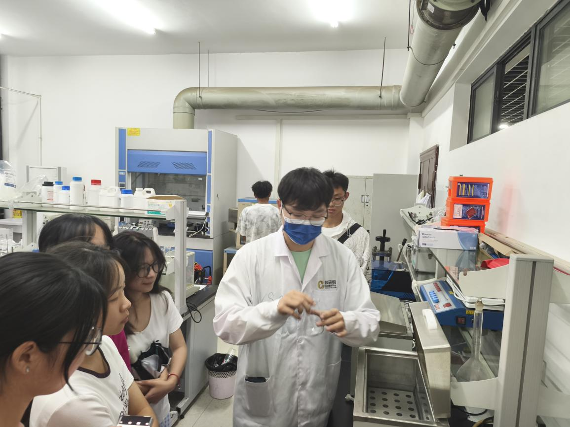 在参观过程中,老师们和师兄师姐们安排了一些实验演示,就一些基础实验操作进行现场示范,也带领同学们参观了一些实验小“成果”,这些有趣的实验点燃了同学们对未来学习生活的激情,让新生亲身感受实验的过程和乐趣,提高他们的实验操作能力和科学素养。