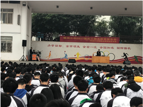 (通讯员 杜娟)3月31日,公司赴江西省赣州市赣州三中开展招生宣传工作,为在校1000余名高三师生进行了励志教育报告会。邀请了学校心理健康教育中心喻瑶老师担任主讲教师,公司员工工作办公室杜娟老师全程参与此次招生宣传工作。