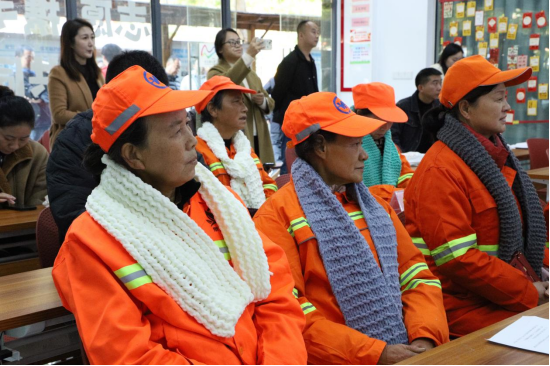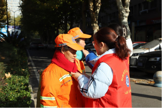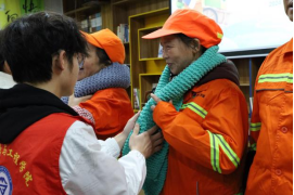 到场的“小蓝钻”们拿起志愿者们编织好的围巾,亲自为环卫工人们戴上,并送去暖心的问候:“天气转凉,工作时要注意好保暖。”活动室里环卫工人们一声声质朴真诚的感谢激励着志愿者们,也温暖了他们的心。