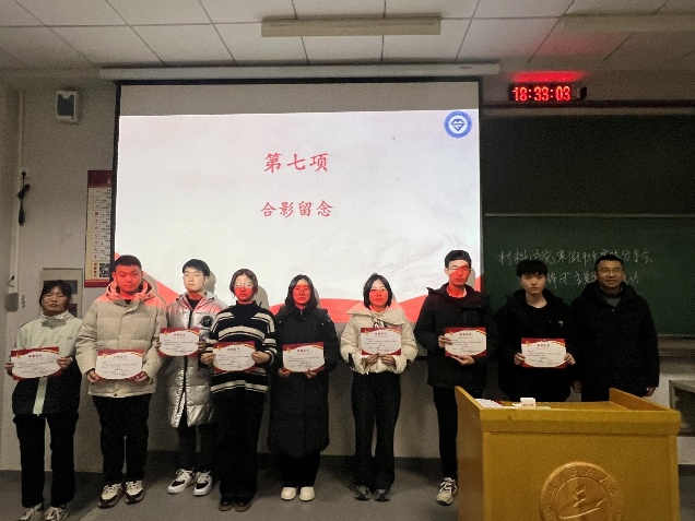 在团队成员分享结束后,党委副书记马科发表了讲话。他首先对实践团成员在寒假中的辛勤付出表示肯定,称赞他们在实践中“长见识、增才干”,展现了学子的风采。接着,他以“学雷锋纪念日”为契机,鼓励同学们将社会实践与志愿服务相结合,勇于承担社会责任,深入社会基层,在实践中磨练成长。马书记还向同学们提出了三点希望:第一,传承“雷锋”精神,成为新时代的追光者;第二,践行“知行合一”,做实干担当的践行者;第三,将奉献、互助、友爱、进步的精神融入到日常生活中,用实际行动诠释“雷锋精神”。马书记的讲话,不仅是对同学们的鼓励,更是对“雷锋精神”的深刻解读,让在场的每一位同学都深受启发。最后,马科书记为各实践团获奖成员代表颁发了荣誉证书,并与他们合影留念。
