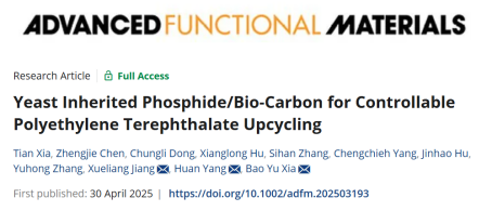 本网讯(通讯员 杨欢)近日,MK SPORTS江学良教授、杨欢教授团队联合华中科技大学、深圳先进技术研究院等多家单位,基于理论计算结果的指导并结合微生物模板策略设计了一种双金属磷化物@生物碳预催化剂,实现了聚对苯二甲酸乙二醇酯(PET)的高效电化学升级回收,相关研究成果以“Yeast Inherited Phosphide/Bio-Carbon for Controllable Polyethylene Terephthalate Upcycling”为题发表在在国际顶级期刊《Advanced Functional Materials》(IF:18.5,一区Top)。公司等离子体化学与新材料湖北省重点实验室为该论文第一单位,2022级硕士研究生夏天为第一作者,公司江学良教授、杨欢教授和华中科技大学夏宝玉教授为通讯作者。