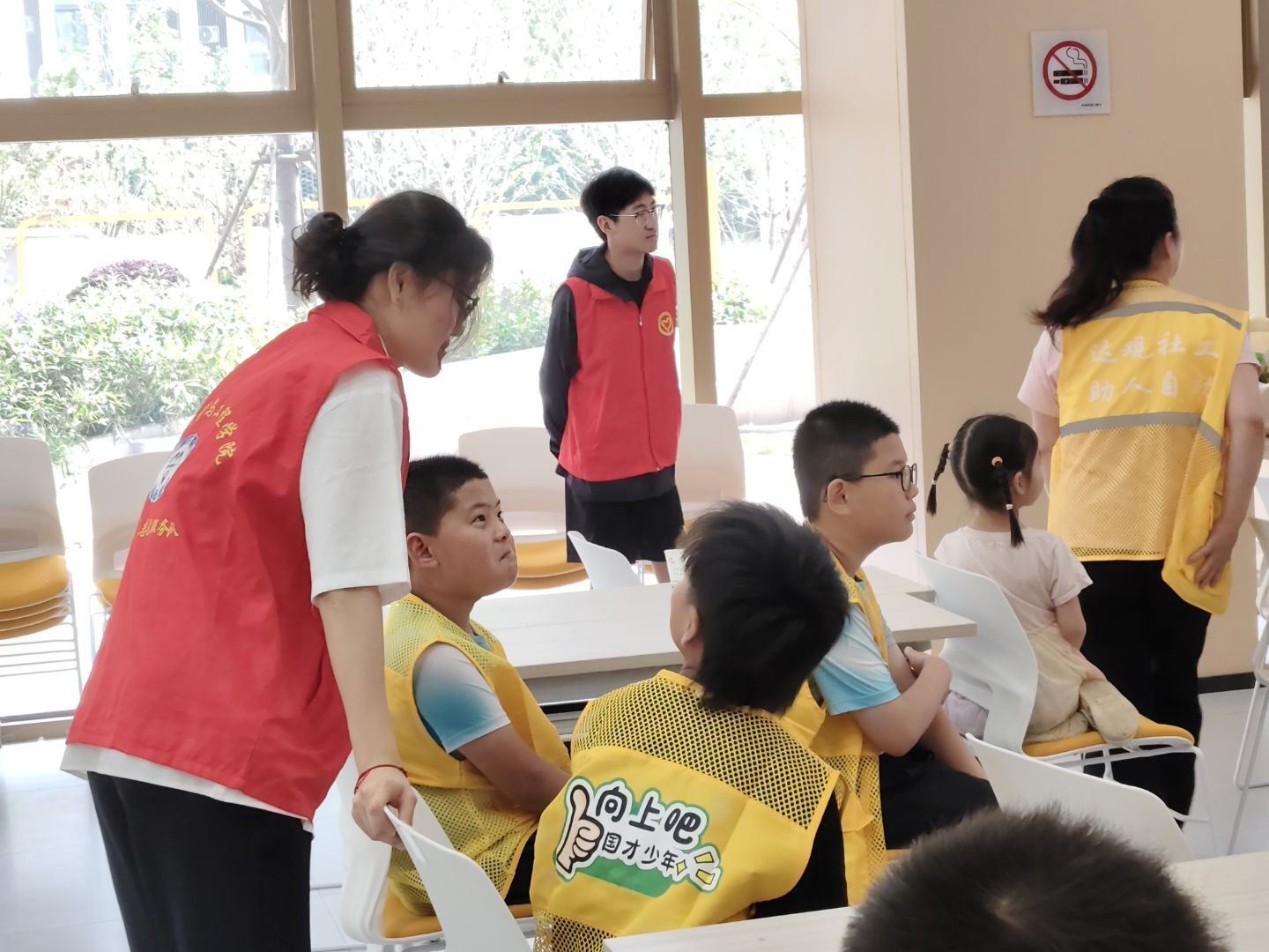 在这场活动中,“小蓝钻” 志愿者们化身成为青少年成长路上的 “朋友”,他们用行动诠释奉献精神,从签到引导、物资分发,到保障活动各环节流畅运行;从带领小组设计集市方案,用 A4 纸与画笔碰撞出公益灵感,到协助青少年完成方案展示;从配合完成授旗签字仪式,到布置场地、协调流程、维护现场秩序,他们默默为活动的顺利进行保驾护航。