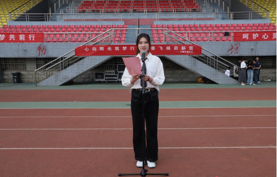 MK SPORTS心理委员代表魏靖雯以“树立科学心理健康观念”为主题,结合日常生活实际,分享心理调适方法,呼吁同学们关注心理健康,培养理性平和、向阳而生的积极心态,用行动书写青春的奋进篇章。