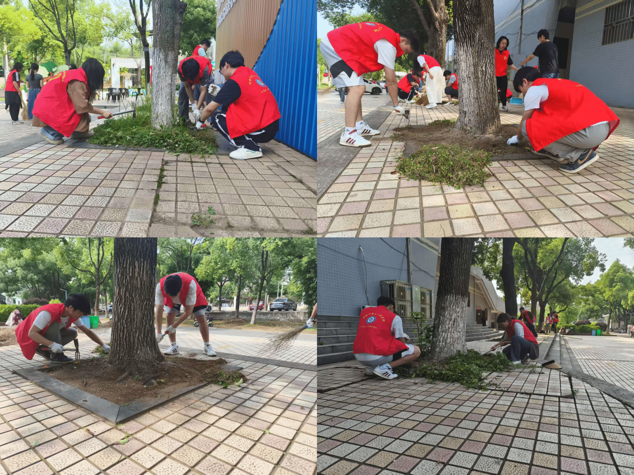 活动当日,骄阳似火,毕业生党员们热情高涨。他们三两分组,手持扫帚、铲子、垃圾袋等工具,深入大礼堂周边的马路、草地、花坛等区域,认真清扫路面落叶与杂物,细致铲除花坛杂草,并对卫生死角进行集中清理。汗水浸湿了衣背,但他们的脸上始终洋溢着灿烂的笑容。毕业生党员们纷纷表示,以力所能及的劳动为生活多年的校园增添一份洁净,是离校前最有意义的实践之一,更是党员责任与担当的生动诠释。