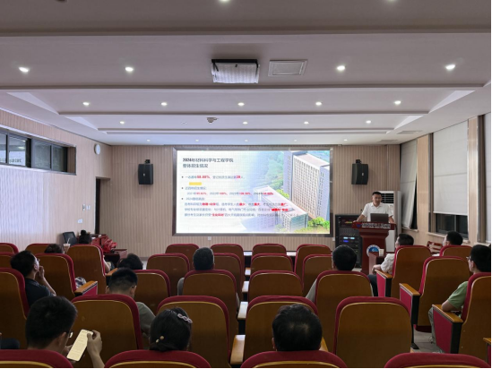 最后,江学良发表了振奋人心的动员讲话。他强调,全院教职工应当有危机意识,以“破局思维”主动迎战。他要求各位招生宣传的老师们要强化学习,熟练掌握政策,精准解答考生疑问,要坚定必胜信心,传承学院从“背水一战”到“重新起航”的奋斗精神。他特别指出,要集中力量擦亮办学品牌,将国家级一流专业建设点、新能源、新工科前沿成果等“材料+”特色优势转化为吸引优质生源的硬实力,为专业的可持续发展筑牢根基。