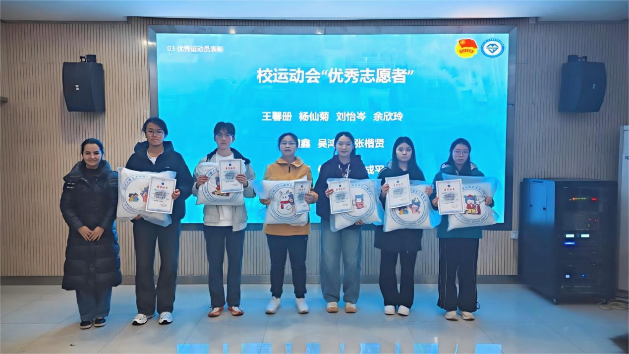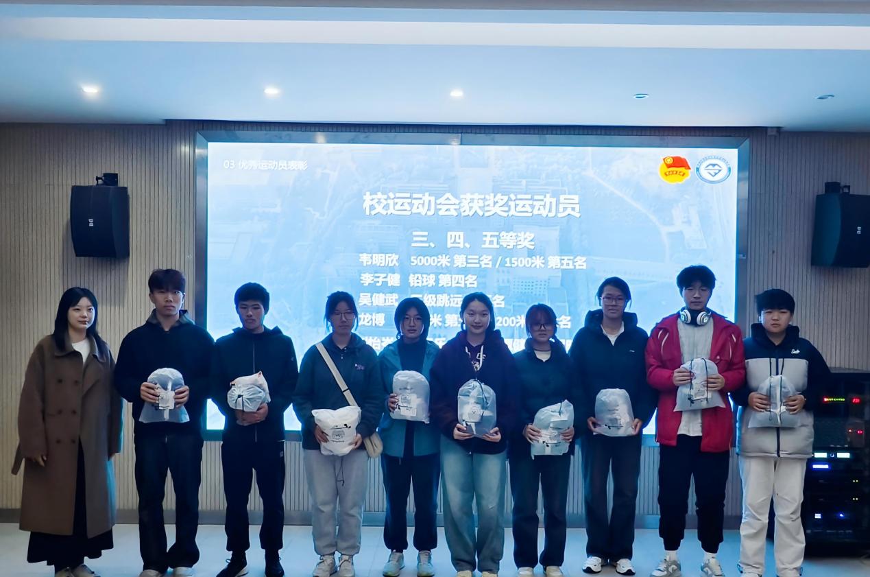 在会中,学院对在校运会中取得优异成绩的个人项目运动员、团体项目代表队进行了集中表彰。同时,荣获“小如”跑团“跑步达人”、校排球比赛冠军、院“新生杯”篮球赛冠亚季军等荣誉的团队也依次上台领奖。为全面肯定广老员工在体育文化活动中做出的贡献,大会还特别对学院体育节及校运会期间的优秀组织者、工作人员、裁判及志愿者进行了表彰,感谢他们在赛事组织、训练保障、现场执行等多方面的默默付出与卓越表现,进一步弘扬了奉献、友爱、互助、进步的服务精神与责任担当。