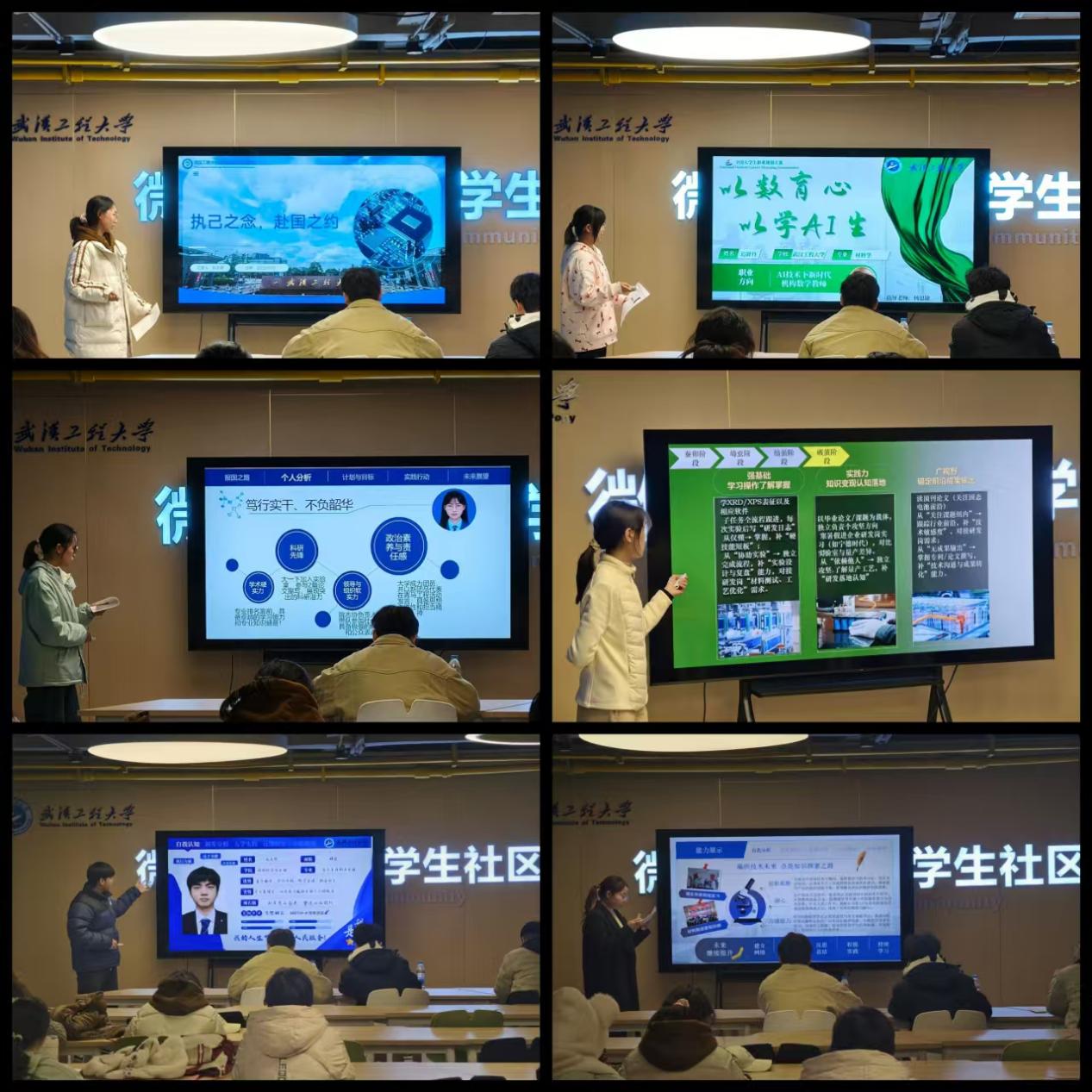 比赛中,选手按抽签顺序进行五分钟汇报。大家各展所长:就业赛道选手结合材料专业特色,精准分析新能源等行业趋势;研途赛道选手以清晰课题方向展现学术规划;成长赛道选手用阶段目标拆解长远理想。简洁的PPT、流畅的表达彰显学子风采,获评委与观众认可。