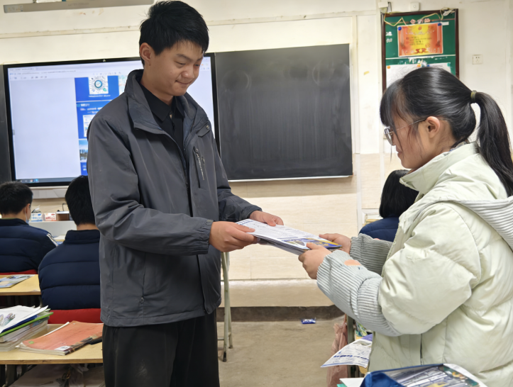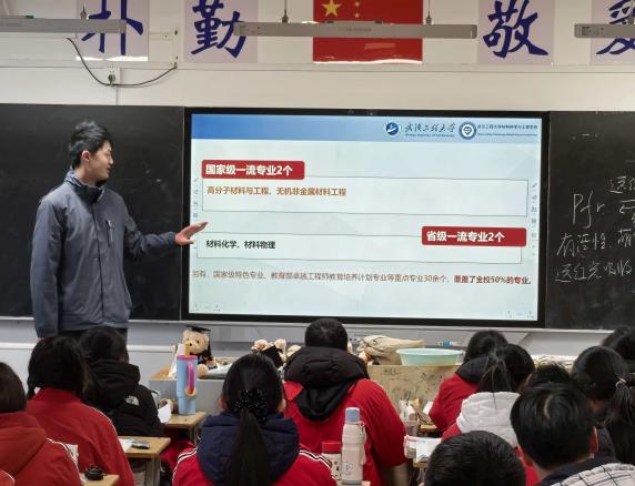 1月20日上午,王汤培走进安庆二中高三(8)班教室,用PPT进行专场宣讲。他先介绍mksport体育办学特色与核心学科实力,接着详细介绍团队、实验室建设成果和科创竞赛成绩,还延伸到校企合作资源、就业前景等受关注话题。每项内容配具体案例与详实数据,清晰呈现武工大的学科优势,让同学们对理想院校认识更清晰,为高考备考明确方向、注入动力。