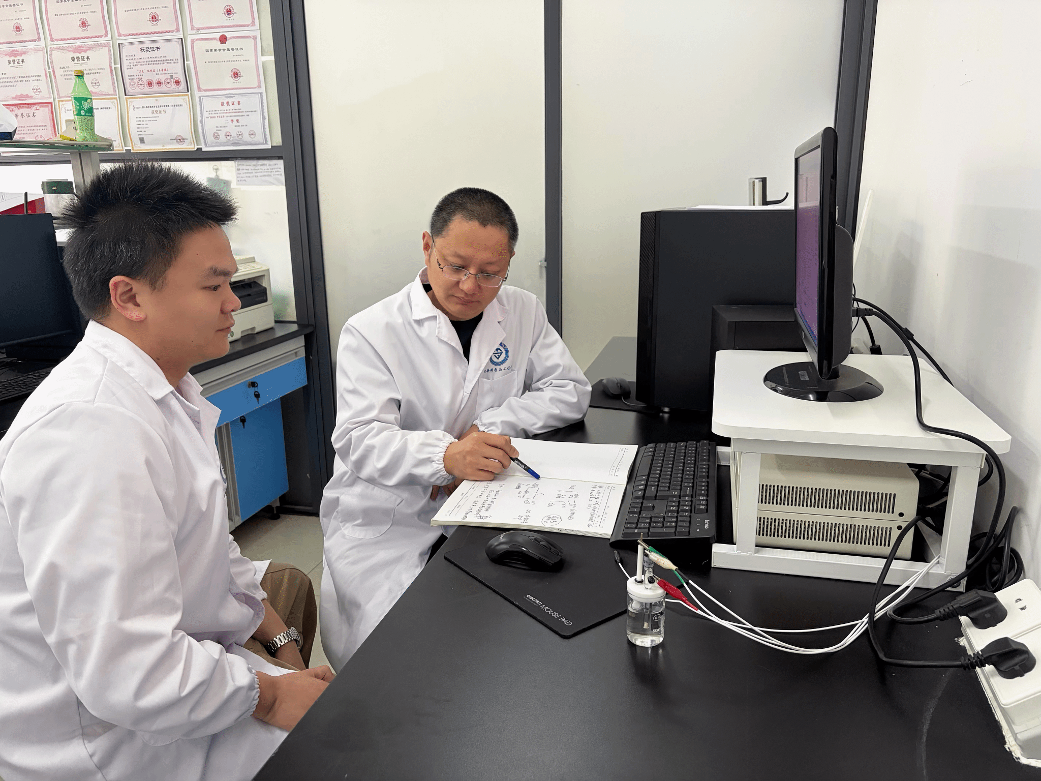 每日扎根实验室,工作日与周末全程在岗,与员工面对面研讨实验方案、分析测试数据、打磨学术论文。在指导方式上,他坚持一对一指导。“每个员工遇到的问题各不相同,性格和学习方式也有差异,单独交流可以更有针对性地帮助解决具体困难。虽然对自己来说更辛苦、花费的时间更多,但从员工的成长来看,效果会更好。”